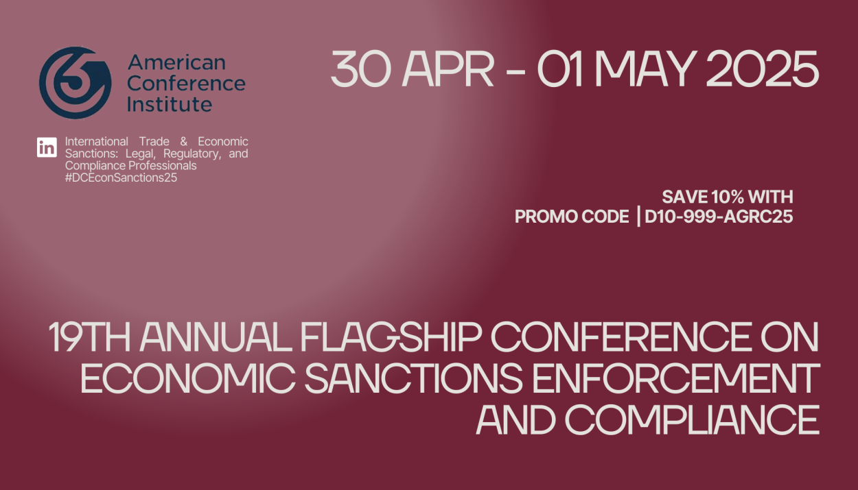 Register to be in the room with 250+ respected legal and compliance professionals in the global sanctions community. ACI’s 19th Annual Flagship Conference on Economic Sanctions Enforcement and Compliance takes place on April 30 – May 1, 2025, in Washington, DC. To learn more, visit https://bit.ly/4gZdBTG.