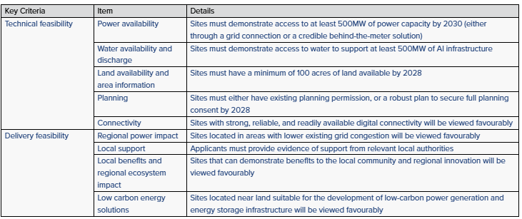 Among the above application requirements, those with specified deadlines (for example, “sites must demonstrate access to at least 500MW of power capacity by 2030” or “sites must have a minimum of 100 acres of land available by 2028”) may possibly be allowed to be pushed back for applications submitted after June 1, given that the original application deadline for AIGZs in May 2025 has already passed (although applications themselves can still be submitted after June 1). However, this point has not been clarified in the UK government’s published materials. Further updates are awaited.