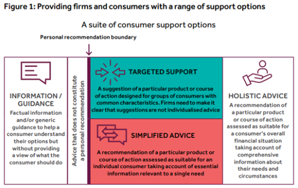 The following figure taken from CP25/17 illustrates how the FCA sees targeted support fitting into the existing advice and guidance matrix: